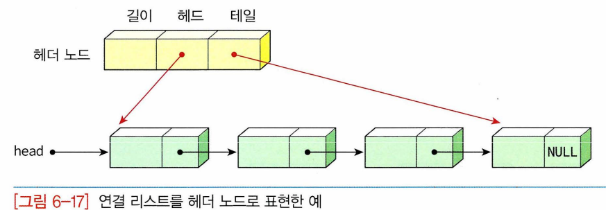 -하나의 연결리스트가 두 개의 포인터 head(첫번째 노드 가리킴)와 tail(마지막 노드 가리킴)로 표현되고 있음. 첫번째와 마지막 노드 동시에 사용하는 경우(헤더노드) 도 많음.(연결리스트에 들어있는 항목들의 개수인 size변수 갖는 경우도 많음)