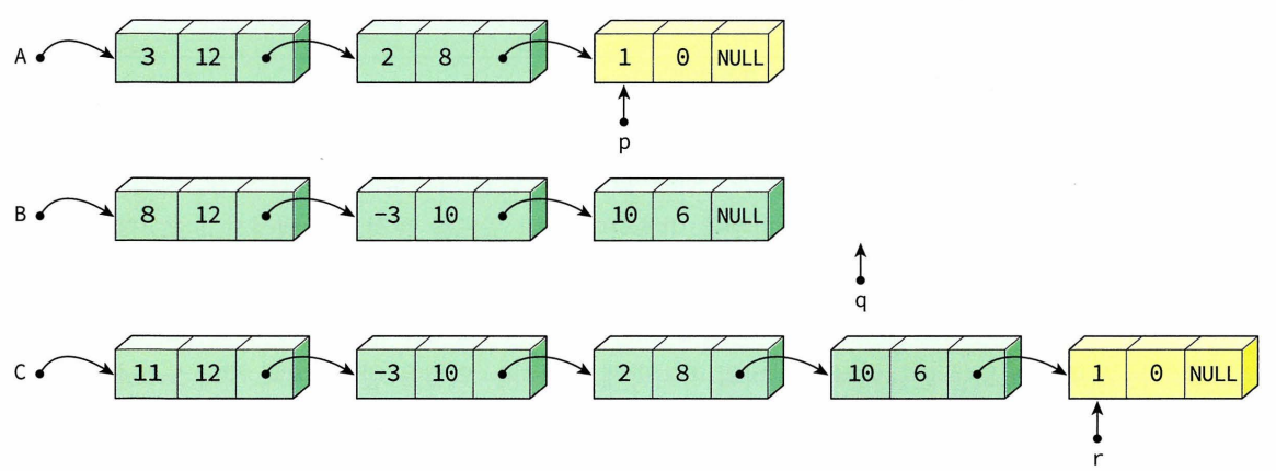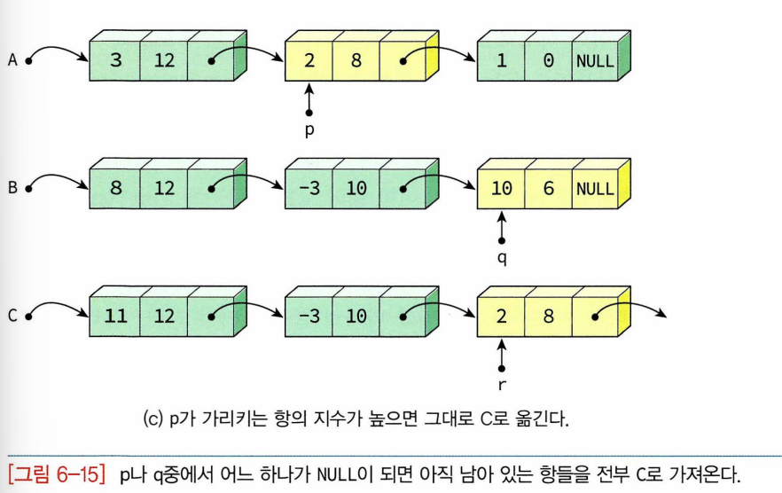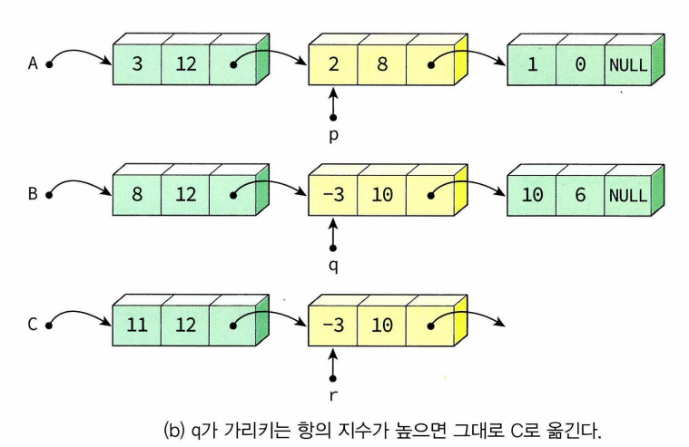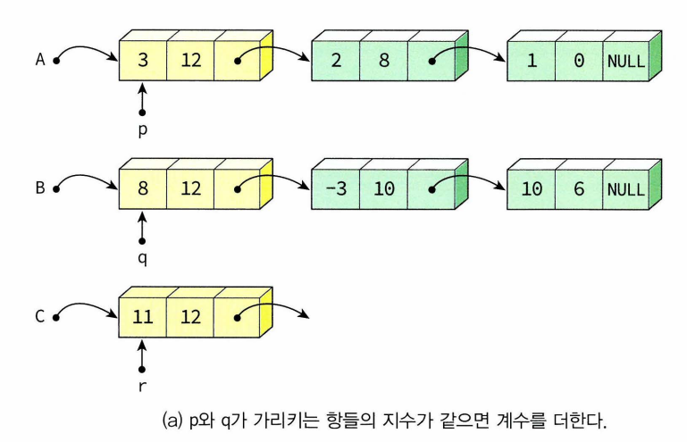 -연결리스트를 이용하여 다항식 표현! 각 다항식은 다항식의 첫 번째 항 가리키는 포인터로 표현