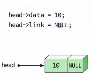 - 마지막 노드의 링크필드는 NULL로 설정 : 더 이상 연결된 노드가 없음을 의미