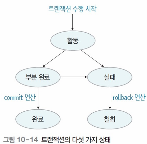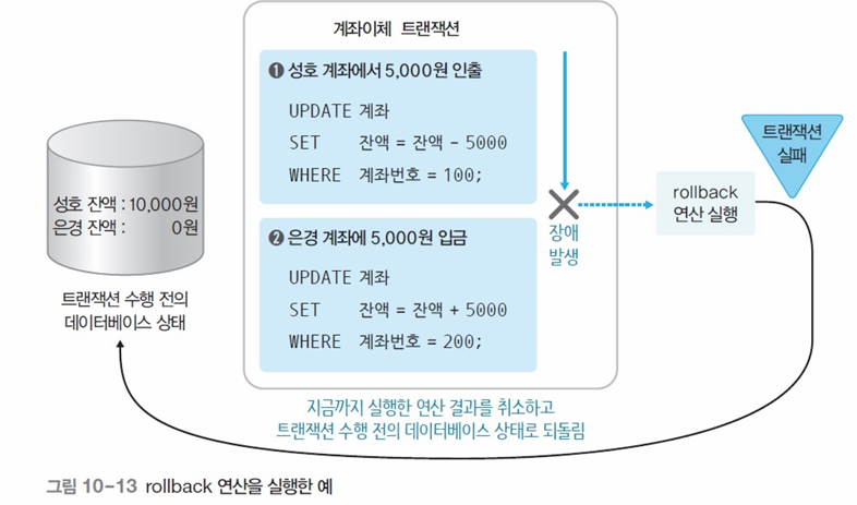 - 데이터베이스를 트랜잭션 작업 전 상태로 되돌려야 함
