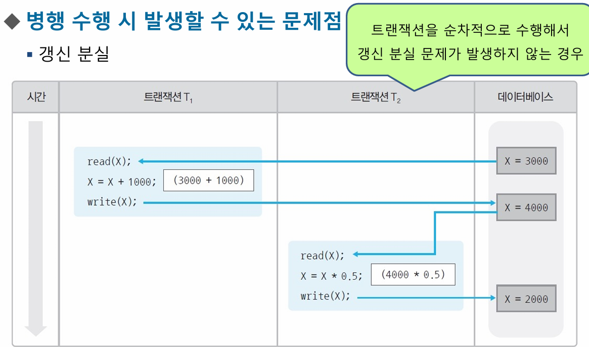 • 각 트랜잭션을 독립적으로 수행하므로 병행 수행이라고 볼 수 없음