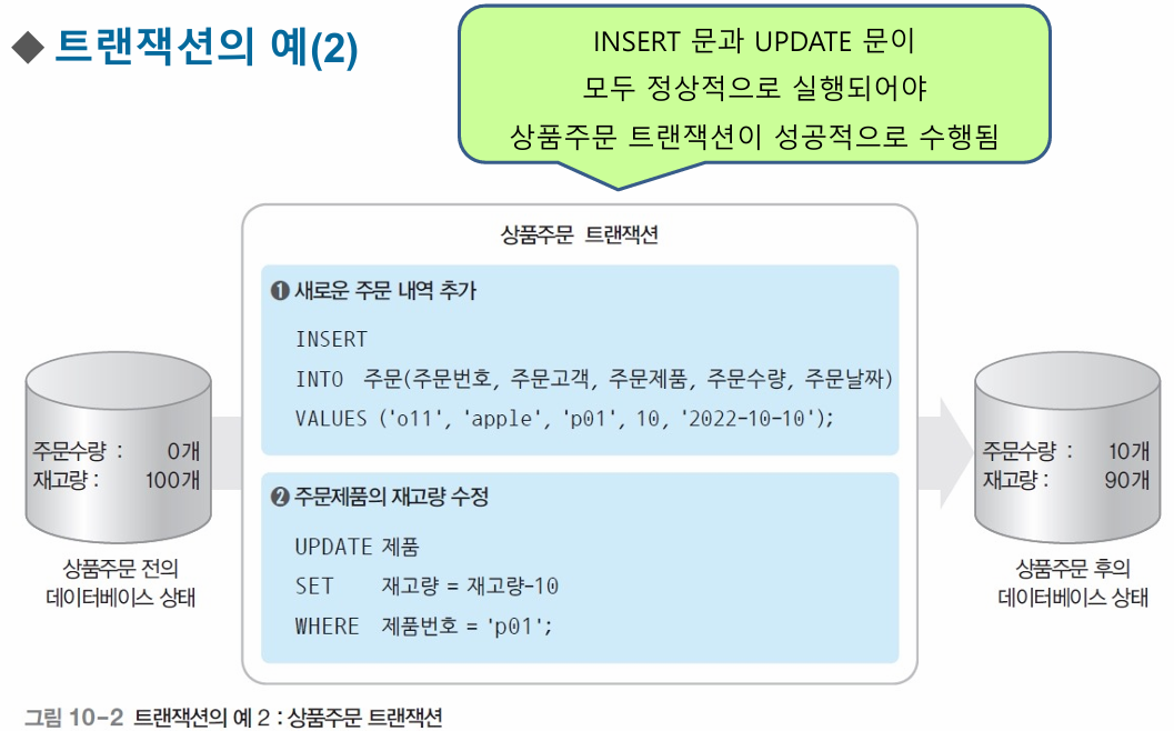 - 데이터베이스의 무결성과 일관성을 보장하기 위해 작업 수행에 필요한 연산들을 하나의 트랜잭션으로 제대로 정의하고 관리해야 함