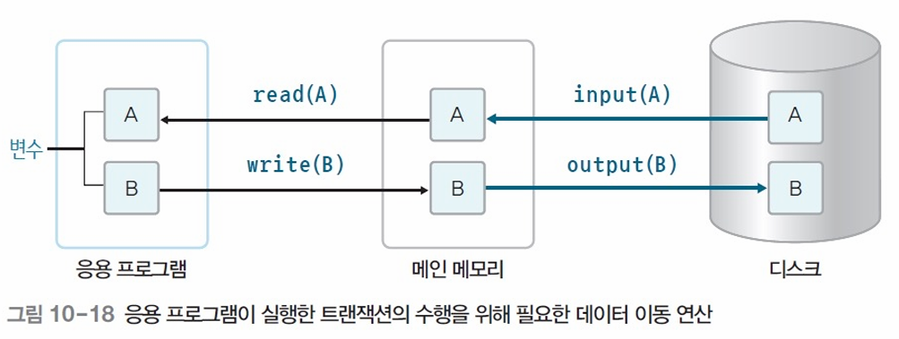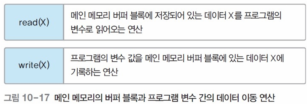 • 트랜잭션이 데이터베이스의 데이터를 처리하기 위해서는, 데이터를 디스크에서 메인 메모리로 가져와 처리한 후, 그 결과를 다시 디스크로 보내는 작업이 필요