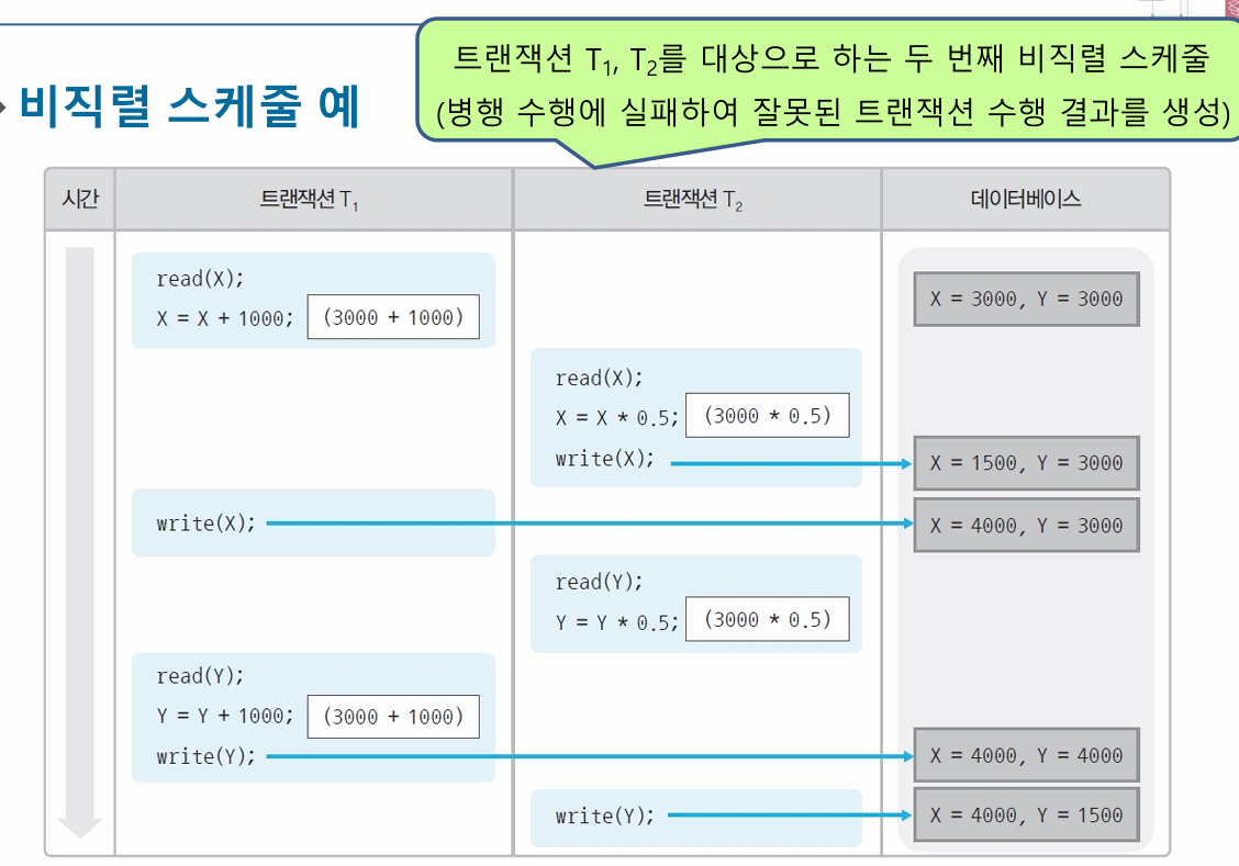 • 직렬 스케줄과 동일한 결과를 생성하는 비직렬 스케줄