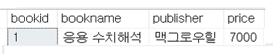 | ⏰1 | 1번 | SELECT bookid=1 | 7000 |