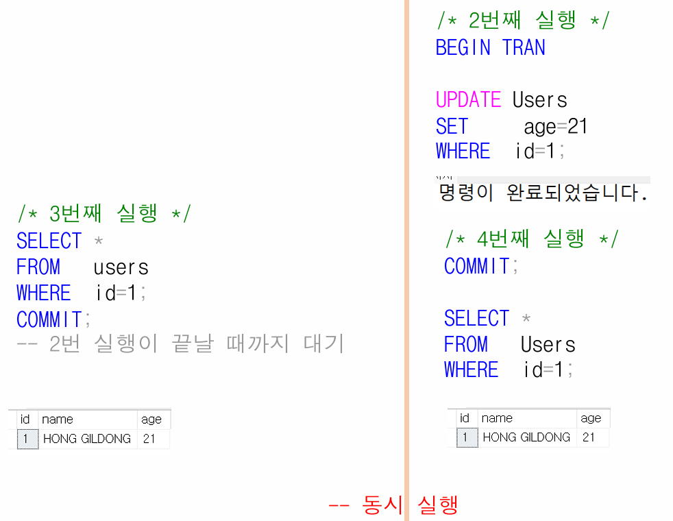 - 다른 트랜잭션이 COMMIT하지 않은 변경 내용은 절대 볼 수 없음