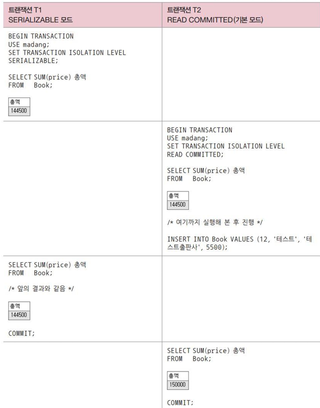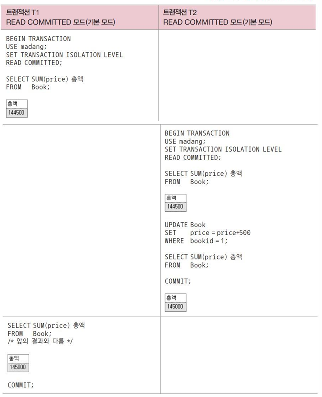 | 트랜잭션 시작 | BEGIN TRANSACTION; |