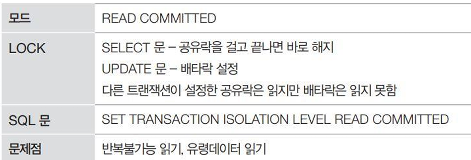 | 1 | COMMIT된 것만 읽자 → Dirty Read는 막지만 반복성 없음 |