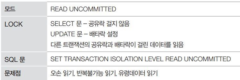 | 0 | 아무 락도 안 걸고 마구 읽는다! → Dirty Read 허용 |