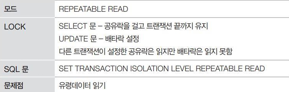 | 2 | SELECT 결과는 그대로! → 반복 읽기 보장, 하지만 삽입은 막지 못함 |