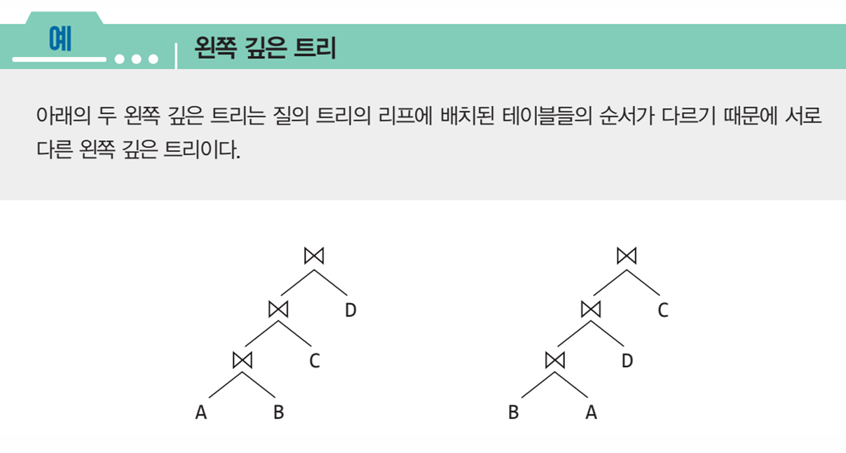 - 가능한 모든 질의 트리를 고려하지 않고 왼쪽 깊은 트리만 고려