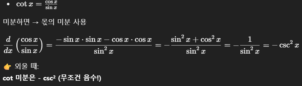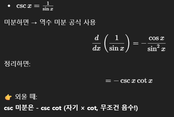 | csc x | 1 / sin x | csc x는 sin x의 역수 |