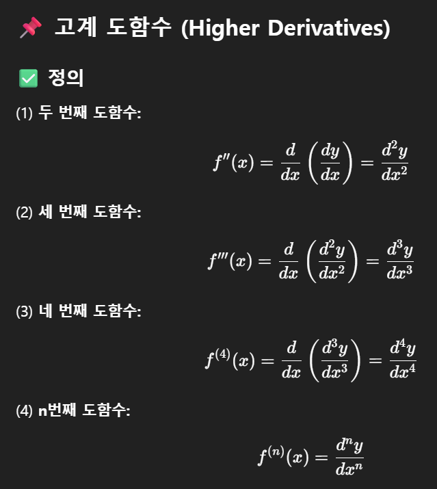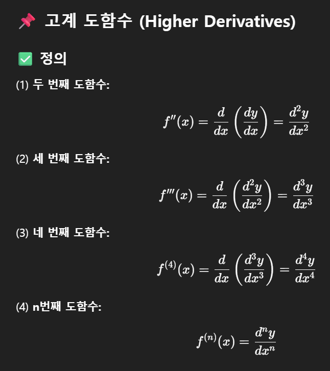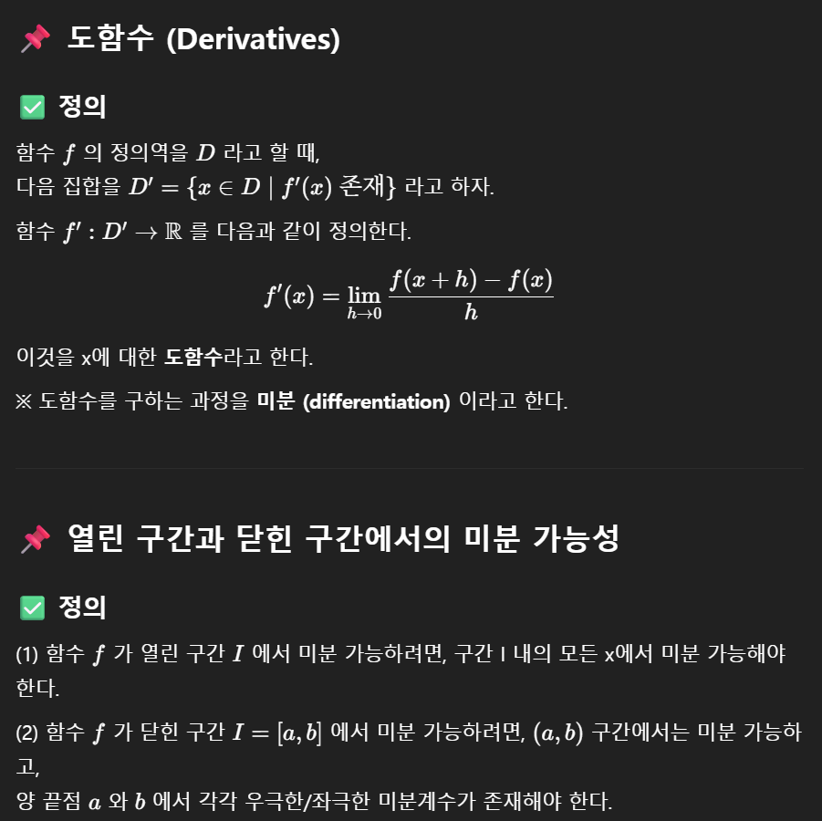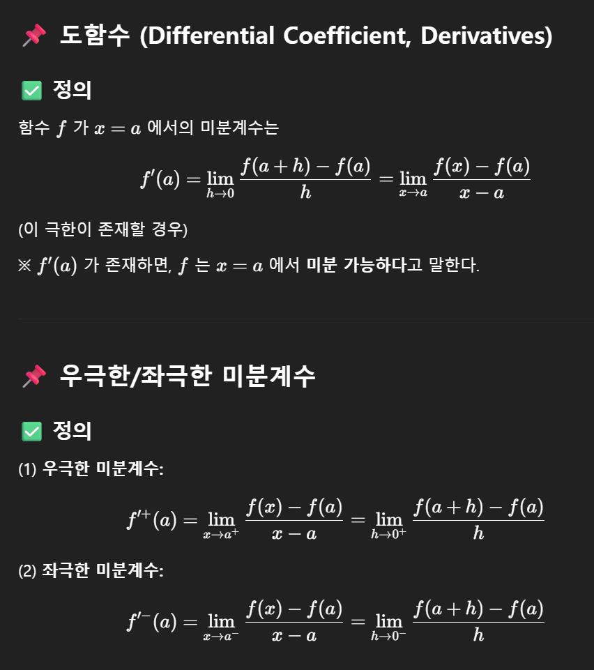 | [미분적분학 I] 암기해야 할 것 (6) | 2025.07.10 |