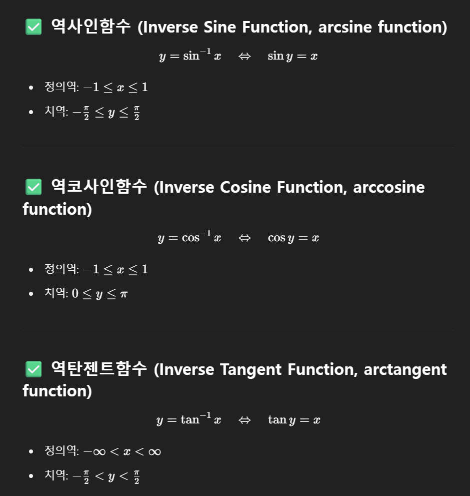 §3.5 역삼각함수 (Inverse Trigonometric Functions)