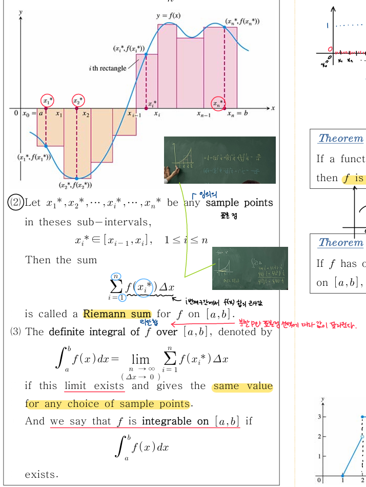 “유한 개의 jump discontinuities(도약 불연속점)”일 때 함수가 정적분 가능하다는 정리