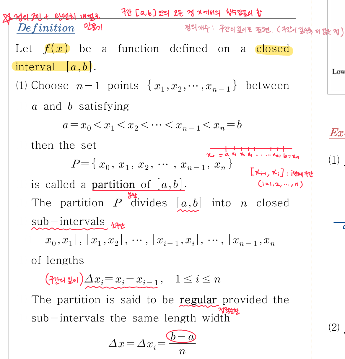 5.2 The Definite Integral(정적분) = Riemann합의 극한