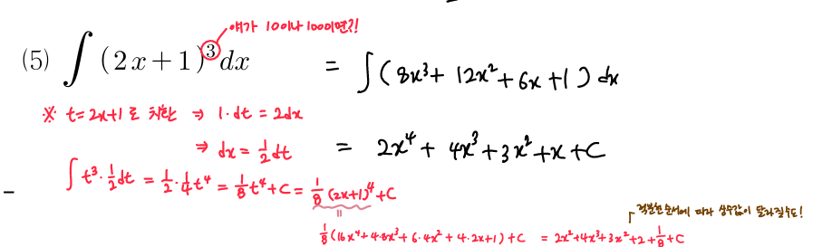 Antiderivative Linearity rules : 역도함수 선형성 법칙 : 상수 k 가 곱해져 있으면 x에 관한 식만 적분, 상수 k는 빼놓기.