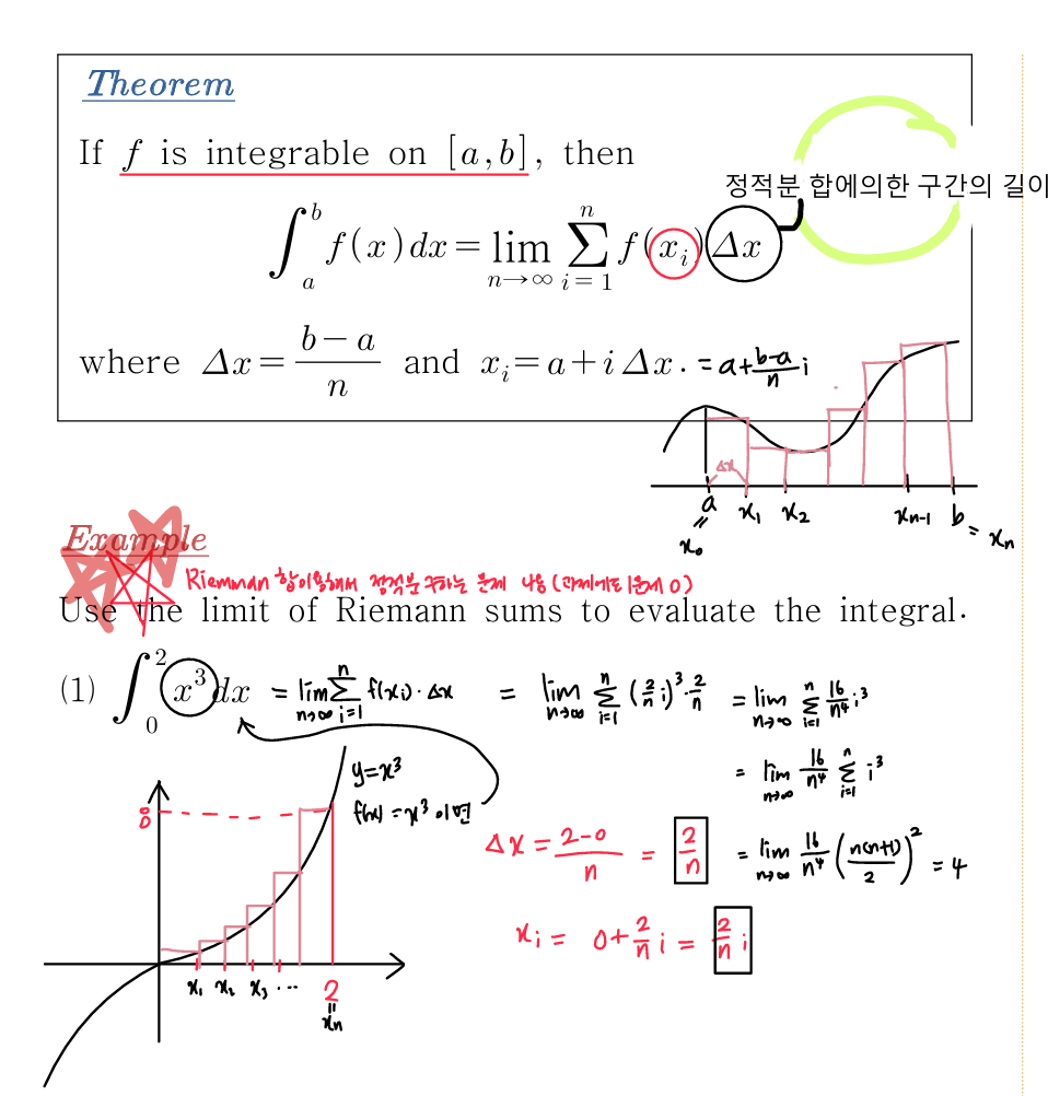 5.2 The Definite Integral(정적분) = Riemann합의 극한