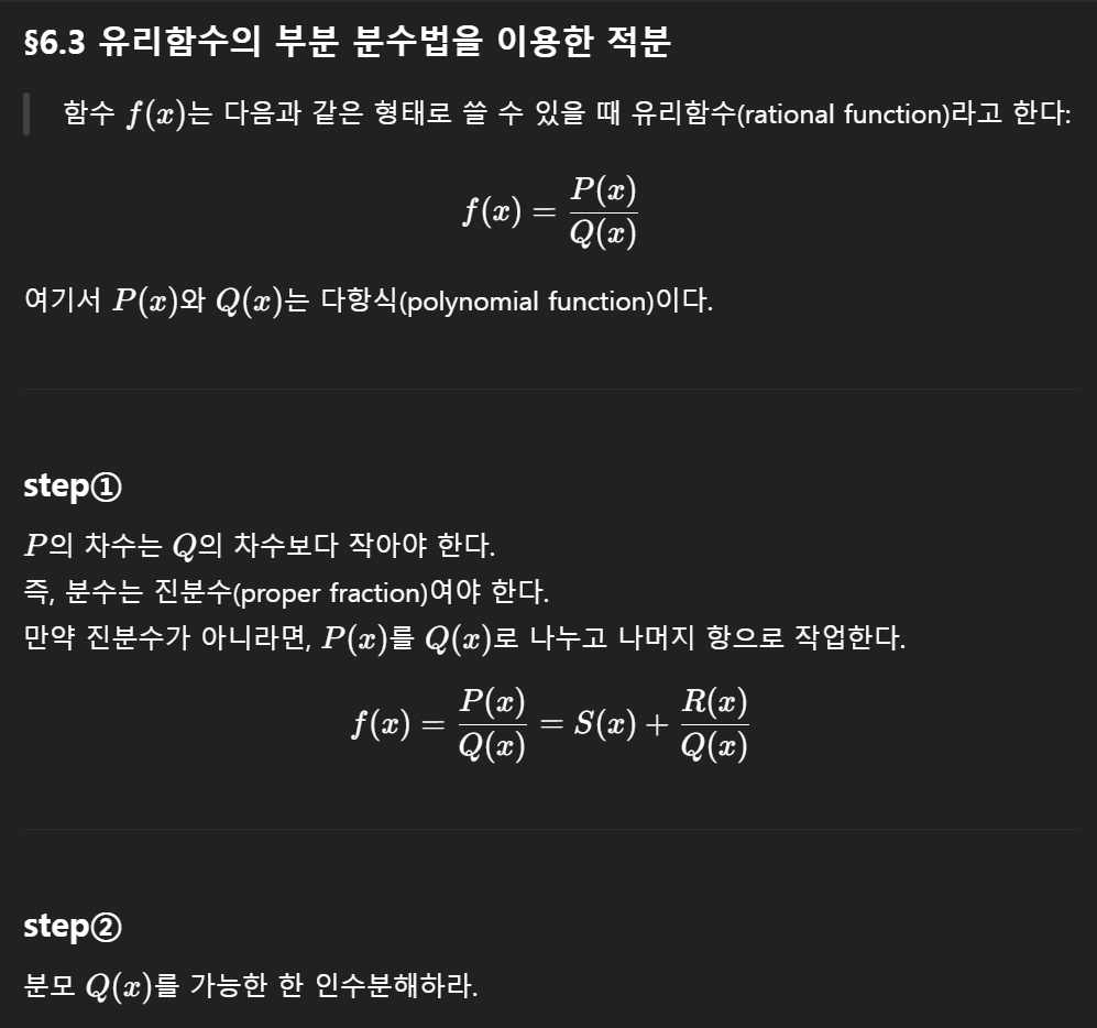 6.3 Integration of Rational Functions by Partial Fractions (부분분수를 이용한 유리함수의 적분)