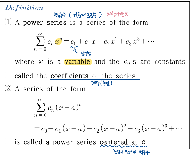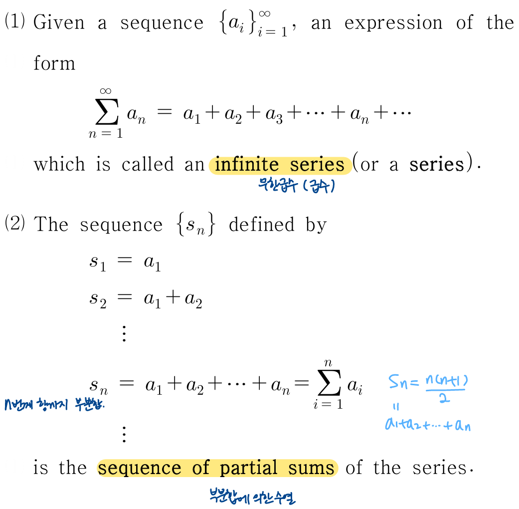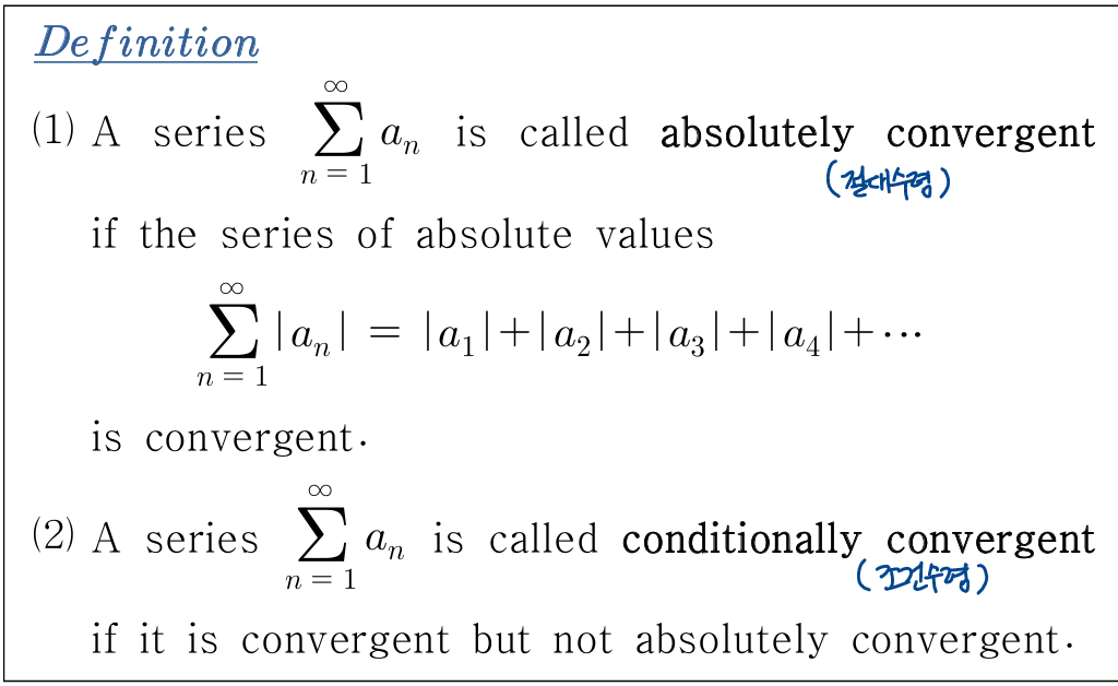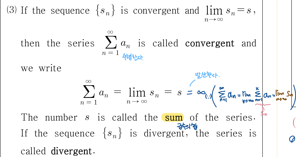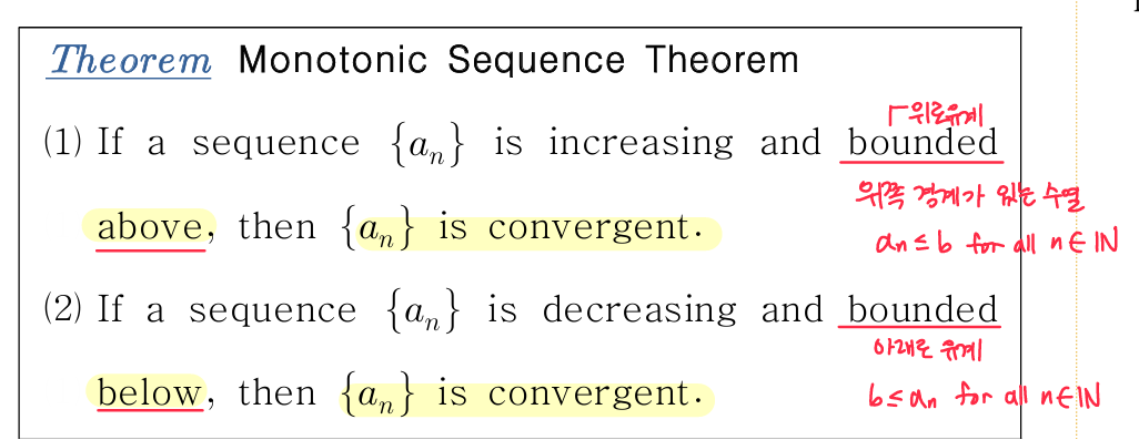 수열: 시험문제 x, 어떤수열은 수렴, 어떤수열은 발산하는지 내용 정확히 알고 있어야함.
