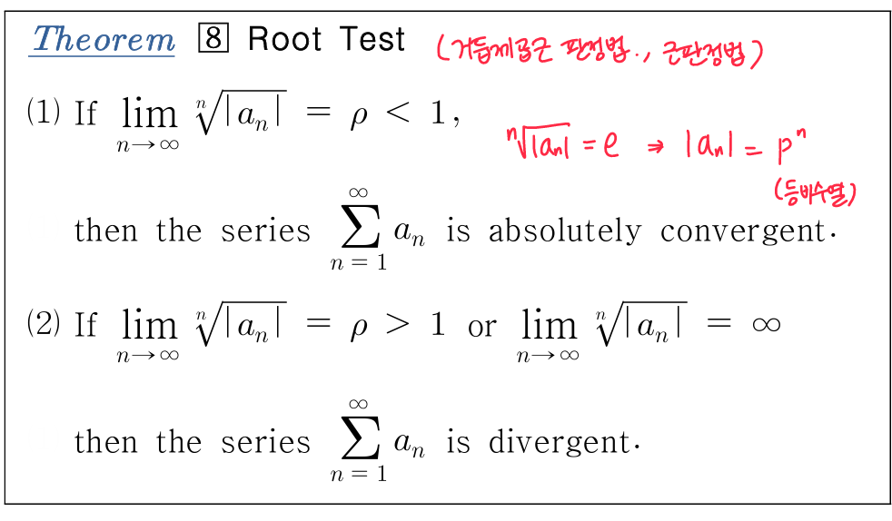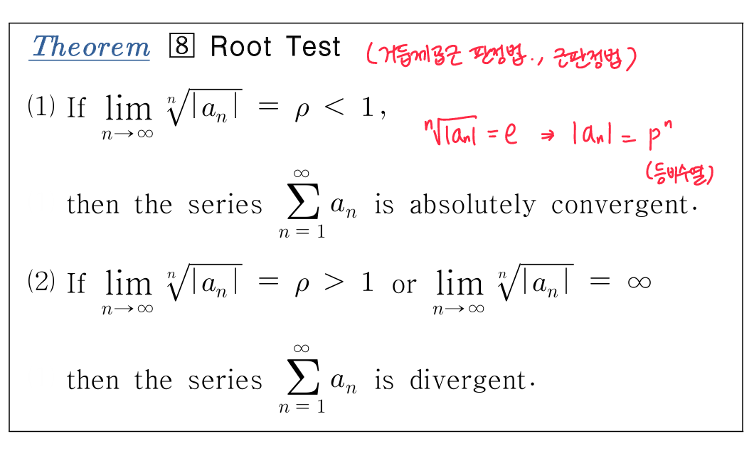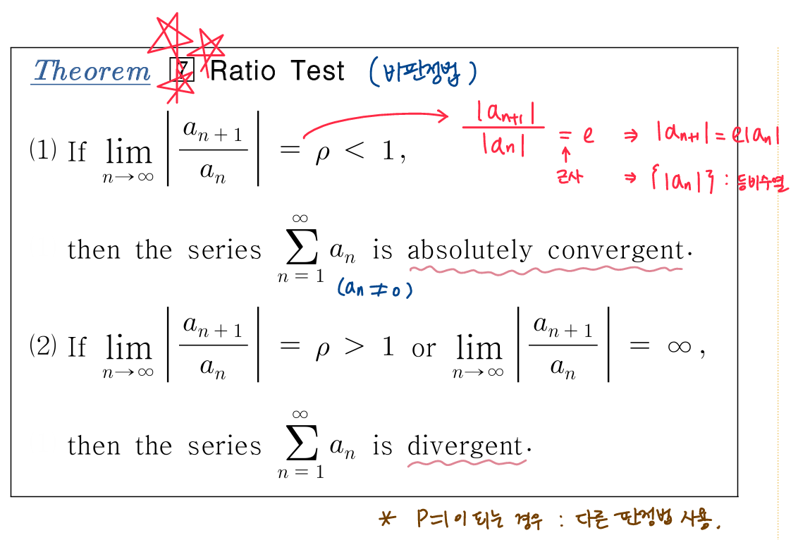 공비의 극한이 1보다 작으면 수렴, 1보다 크거나 무한이면 발산