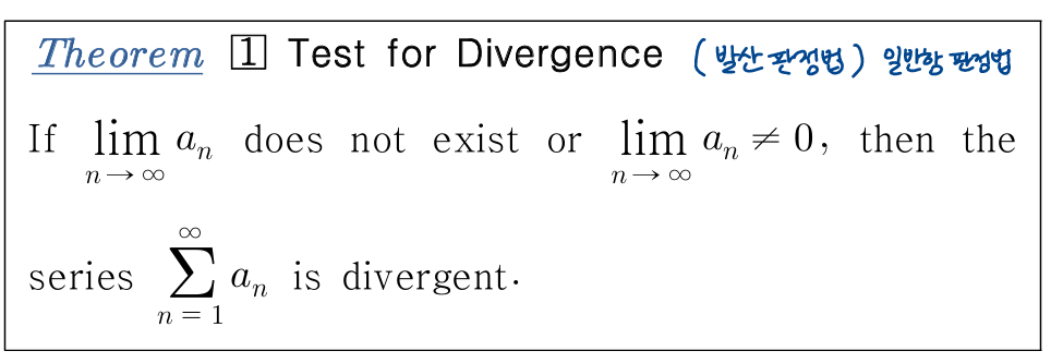 1. 먼저 극한이 0 아니면 → 발산판정법 ✅
