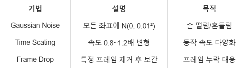 영상마다 프레임 길이가 달라 선형 보간(Linear Interpolation)으로 모든 영상을 30프레임으로 고정했다.