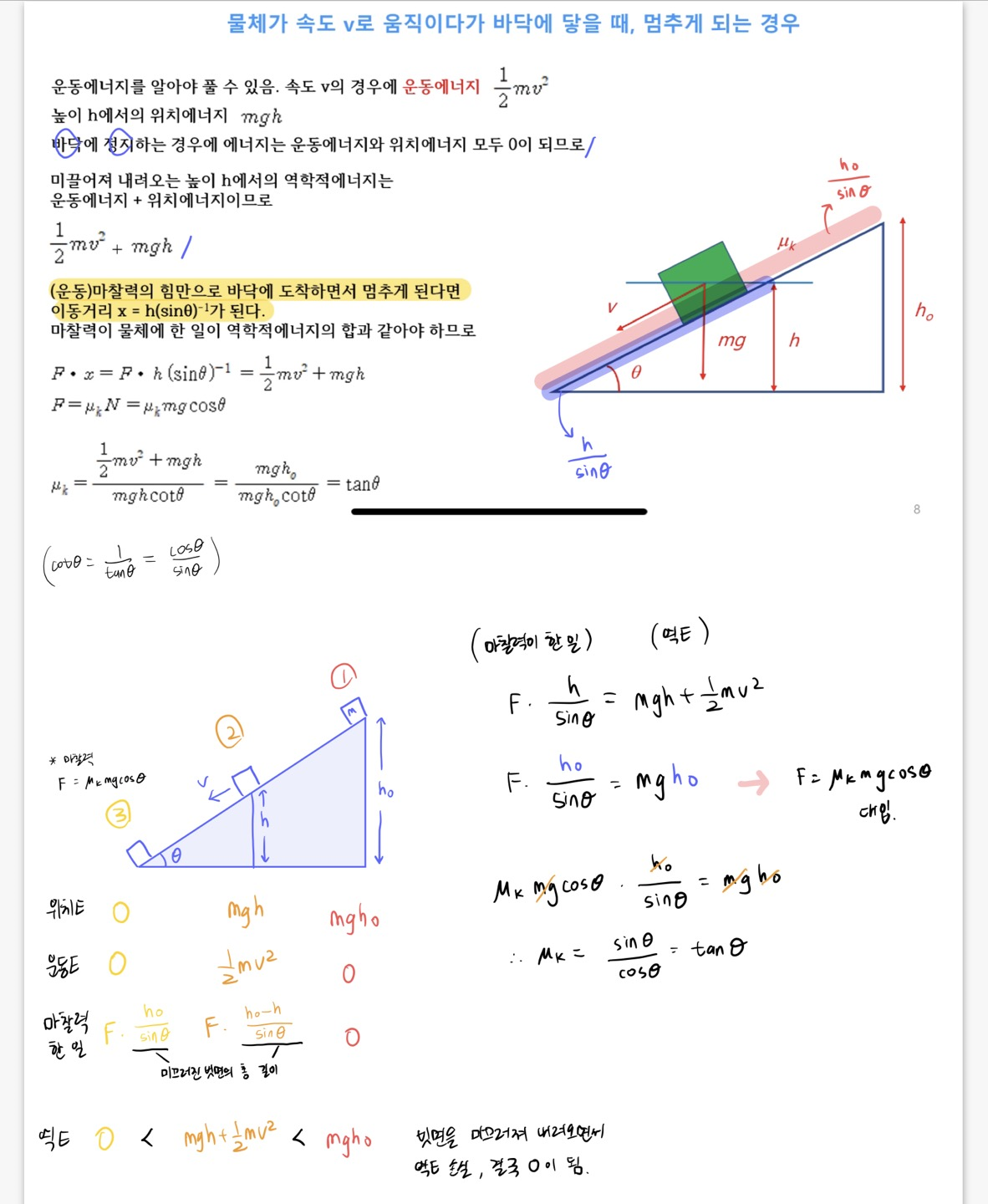 - 역학적 에너지(J) : 운동에너지, 포텐셜에너지