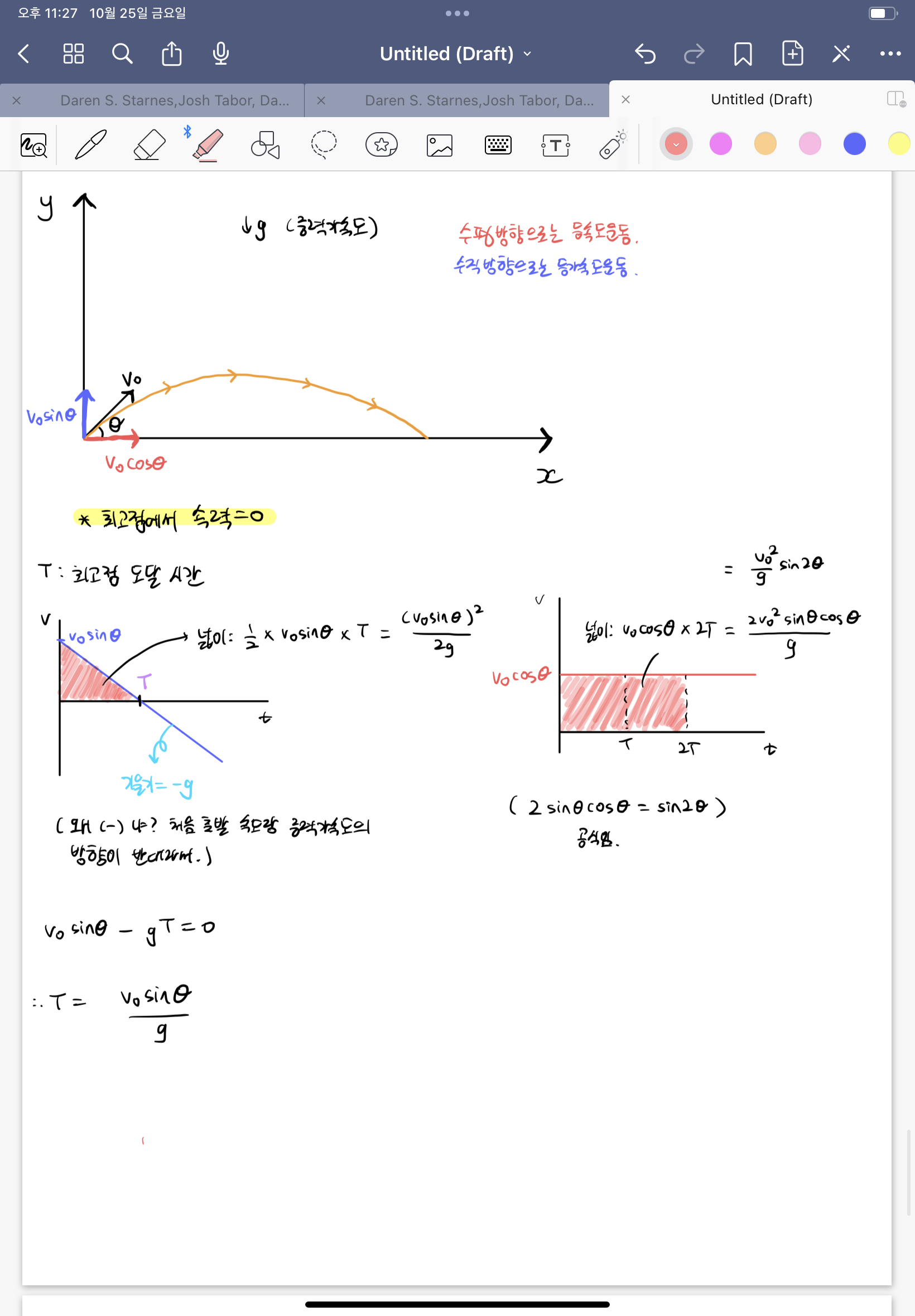 - 포물선 운동 or 포물체/포사체 운동 : 두 성분(등속운동:수평, 등가속도운동: 수직) 이 합해져 방향이 변하는 운동