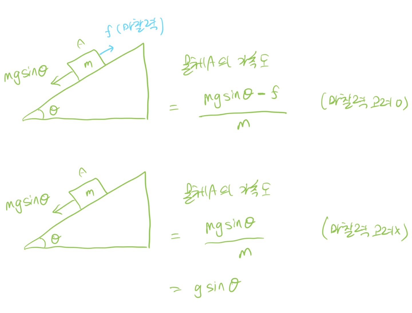 - A. 두 개의 힘이 가해짐(중력과 수직항력)
