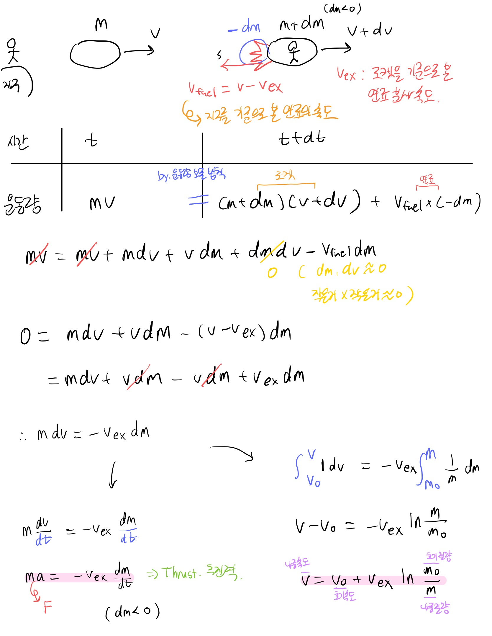 - 로켓 기술하는 방법은 반드시 운동량 보존의 법칙을 적용해야 한다.