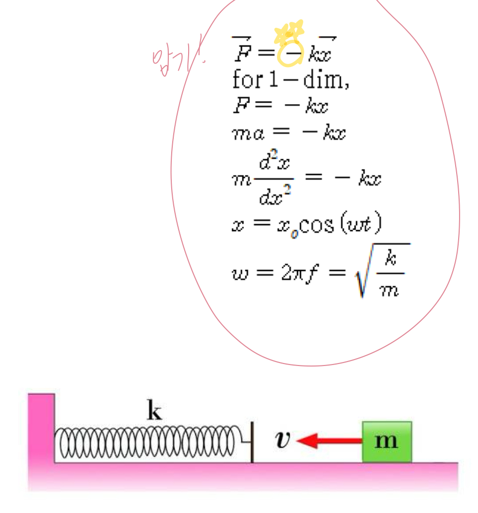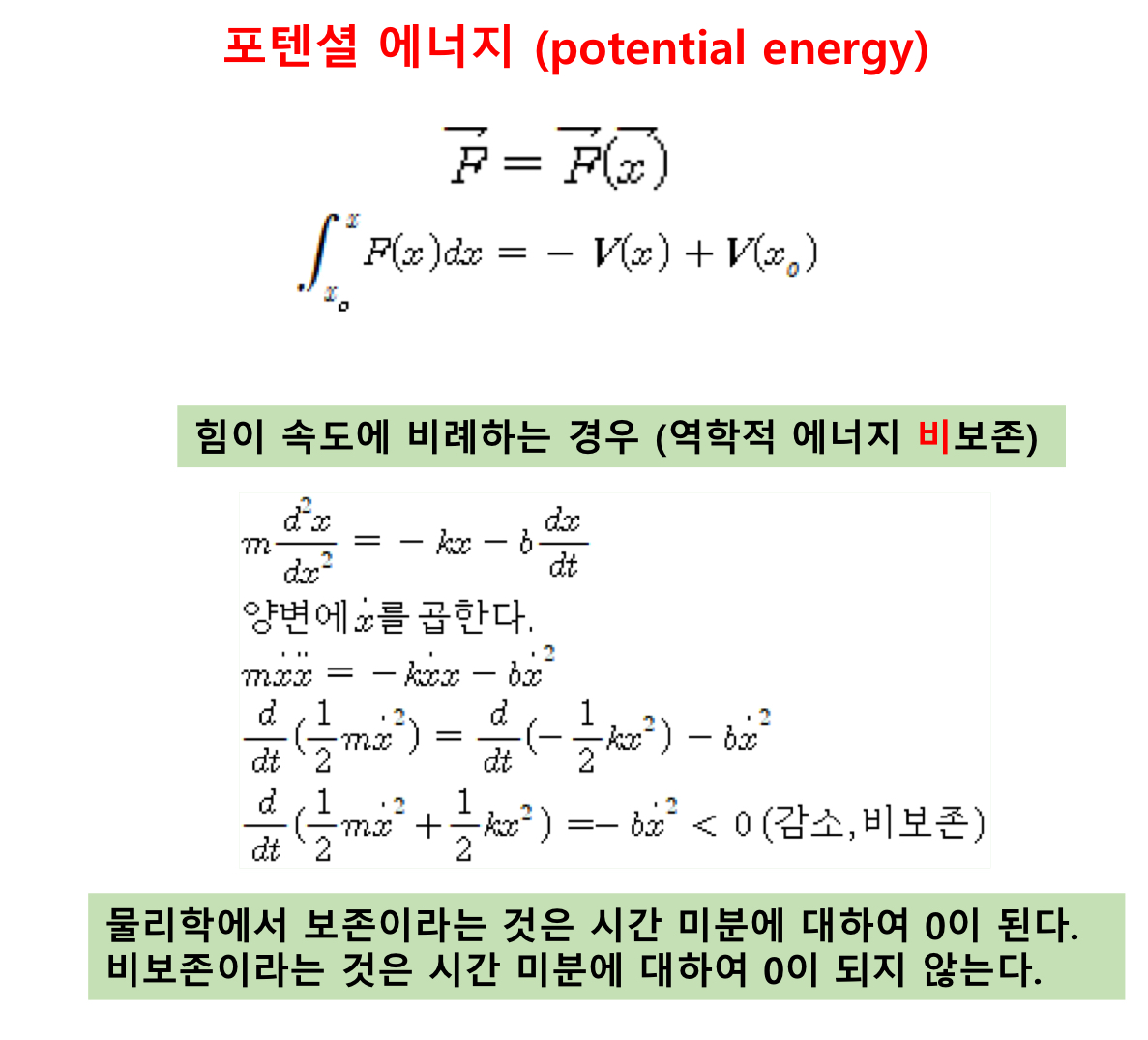 - 용수철의 포텐셜에너지 : 1/2 kx^2