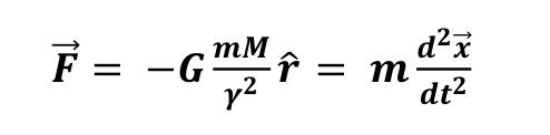 여기서 m들은 중력질량으로 힘을 만드는 원인. 나중에 운동방정식의 m과 비교하여 같은 물리량이라고 가정>> 아인슈타인의 일반상대론 얻을 수 있음.