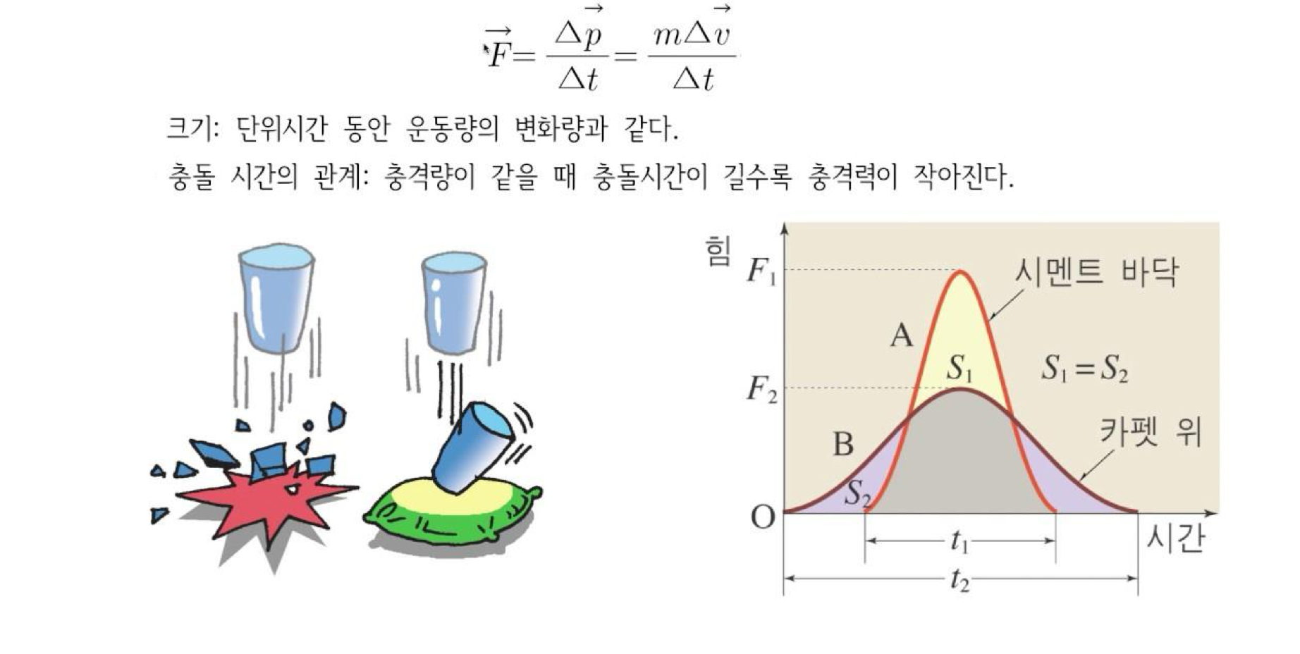 - 충격량 : 물체가 충돌할 때 받는 힘