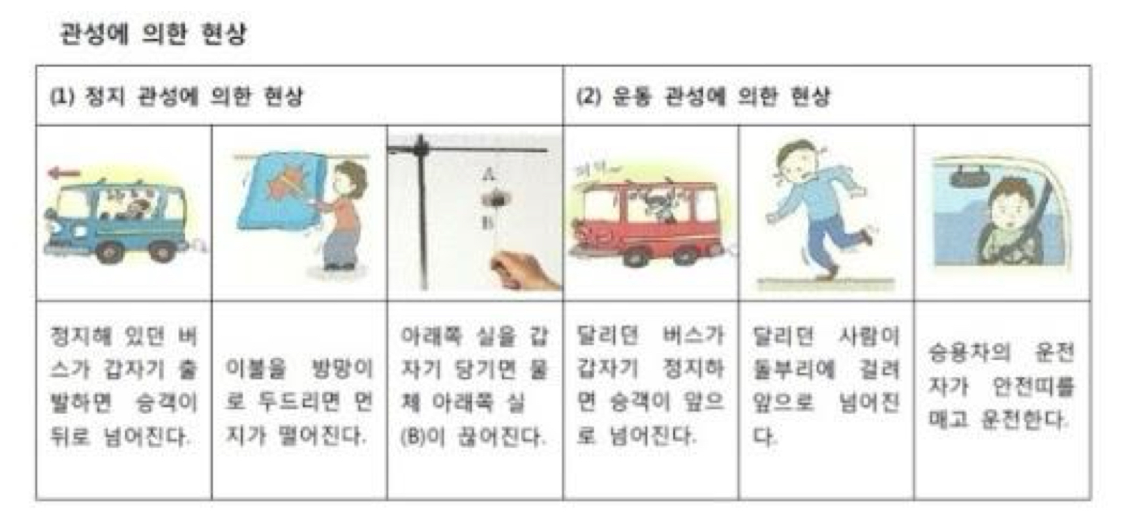 - 1법칙(관성의 법칙) : 관성계 - 물체의 질량 중심은 외부 힘이 작용하지 않는 한 일정한 속도로 움직인다. (버스 안 사람)