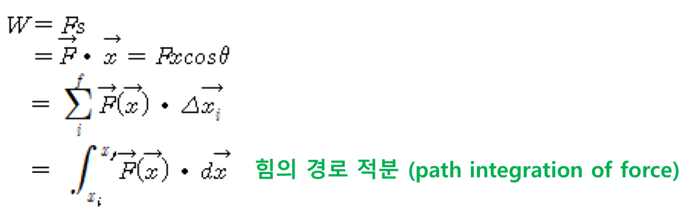 - 일(work) = 힘(force)와 변위(x)의 내적(inner product)