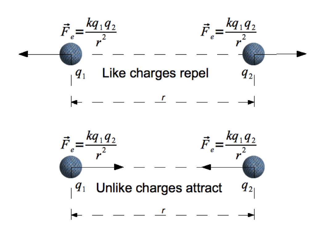 -전기력(전하와 전하가 서로 밀거나 당기는 힘)