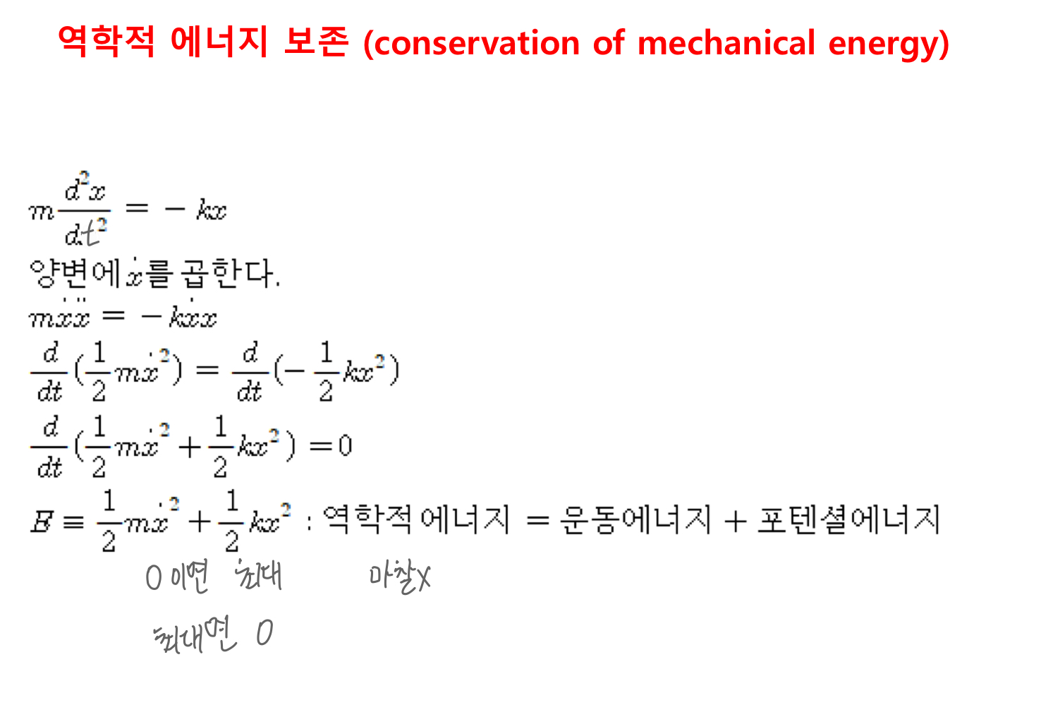 우리가 관심있는 경우: F=0이거나 F=-kx와 같은 Hooke의 힘(복원력)이 작용하는 경우.