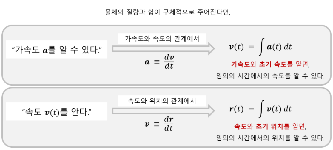 - 뉴턴의 운동법칙은 물체의 미지의 위치를 시간에 대한 함수로 표현, 물체의 위치, 속도, 가속도, 물체에 작용하는 힘 등을 함수에 대한 미분 방정식으로 나타냄 > 변량들을 역학적으로 표현. 숫자가 아니라 함수가 답이 된다.