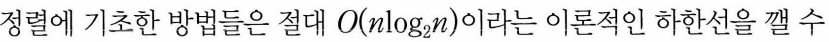 - 기수정렬은 O(kn)의 시간 복잡도를 가지는데 대부분 k<4이하.