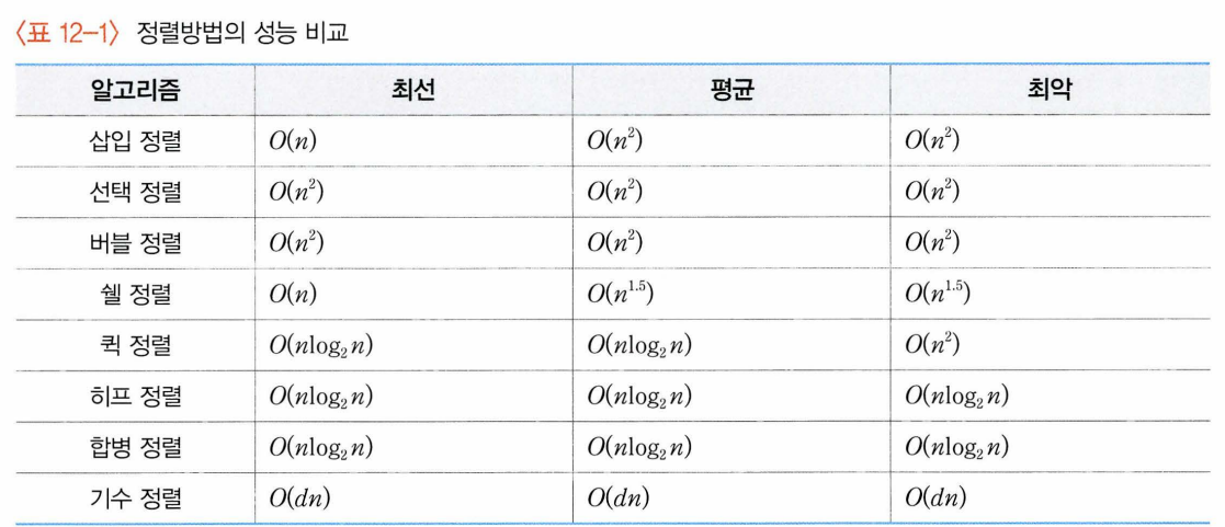 12.10 정렬 알고리즘의 비교