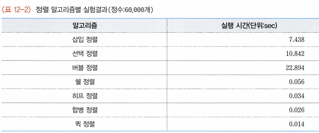 12.10 정렬 알고리즘의 비교