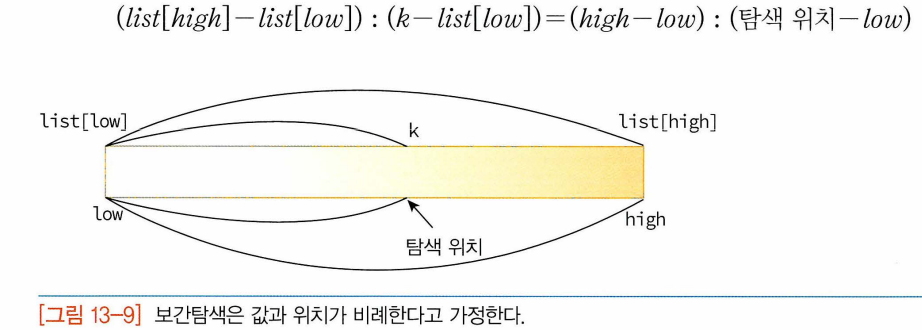 - 보간탐색 : 탐색키가 존재할 위치 예측하여 탐색