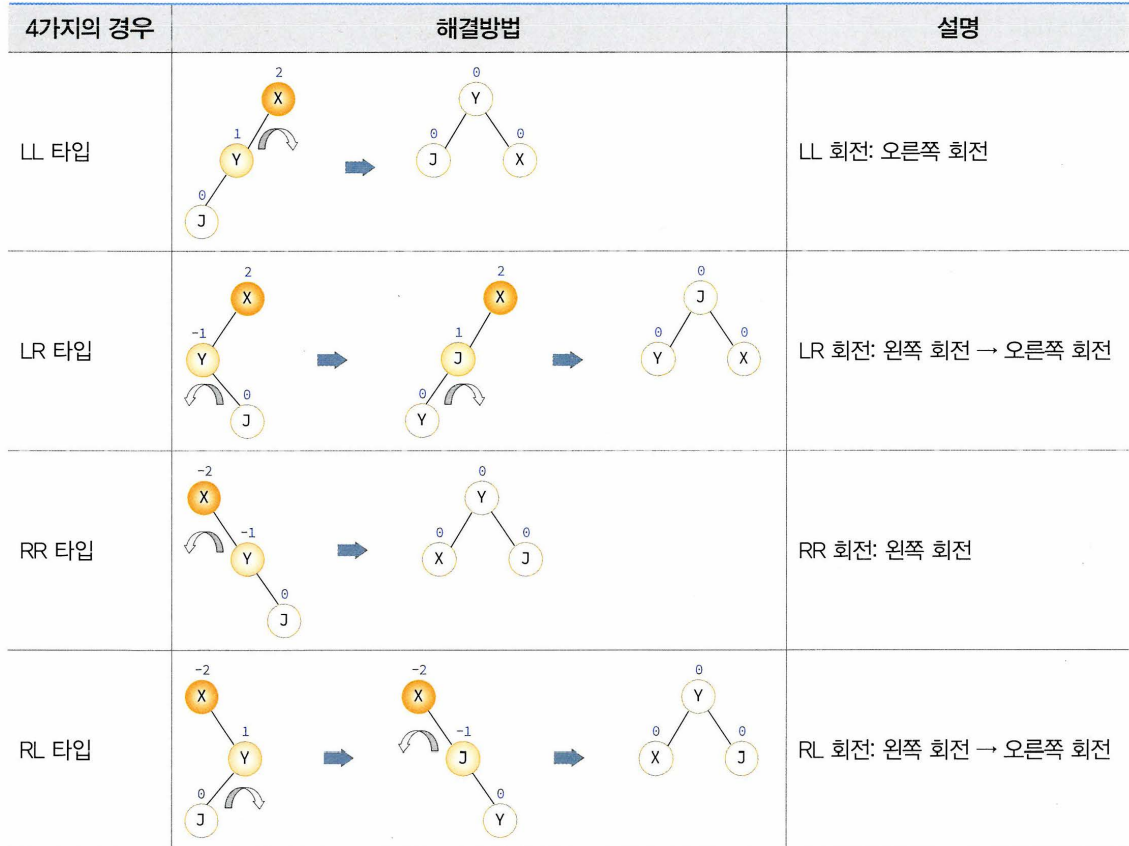 - 균형인수 = (왼쪽 서브트리의 높이 - 오른쪽 서브트리의 높이) , 모든 노드의 균형인수가 +-1 이하이면 AVL트리