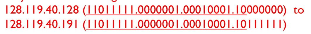 - 128.119.40.64, 128.119.40.80, 128.119.40.96, 128.119.40.112는 모두 128.119.40.0/24 네트워크에 속합니다.
