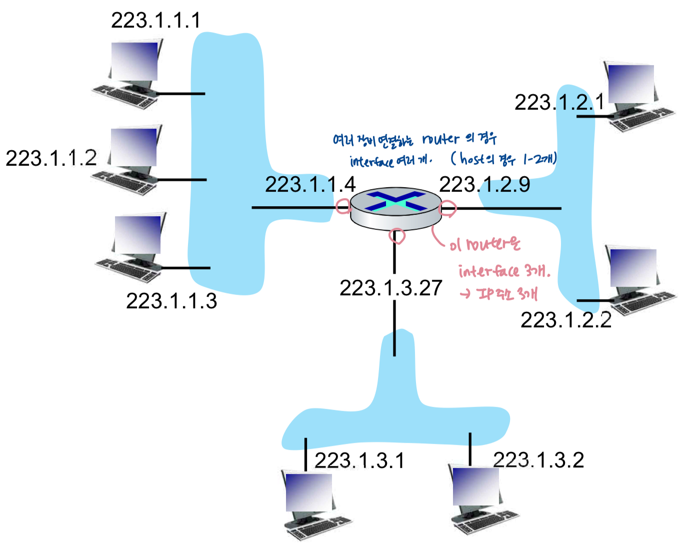- IP adresses는 각각 인터페이스와 연관돼있다.