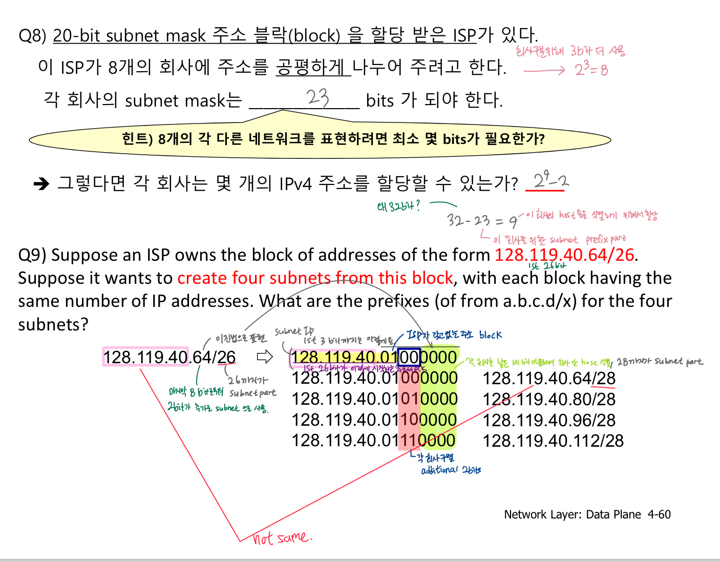 - 128.119.40.64, 128.119.40.80, 128.119.40.96, 128.119.40.112는 서로 다른 /28 서브넷에 속합니다.