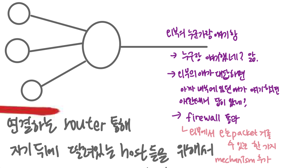 - host의 network inteface가 router에 직접 몰려있는 경우 거의 x. 대부분 ethernet switch나 wifi access point에 몰려있다.
