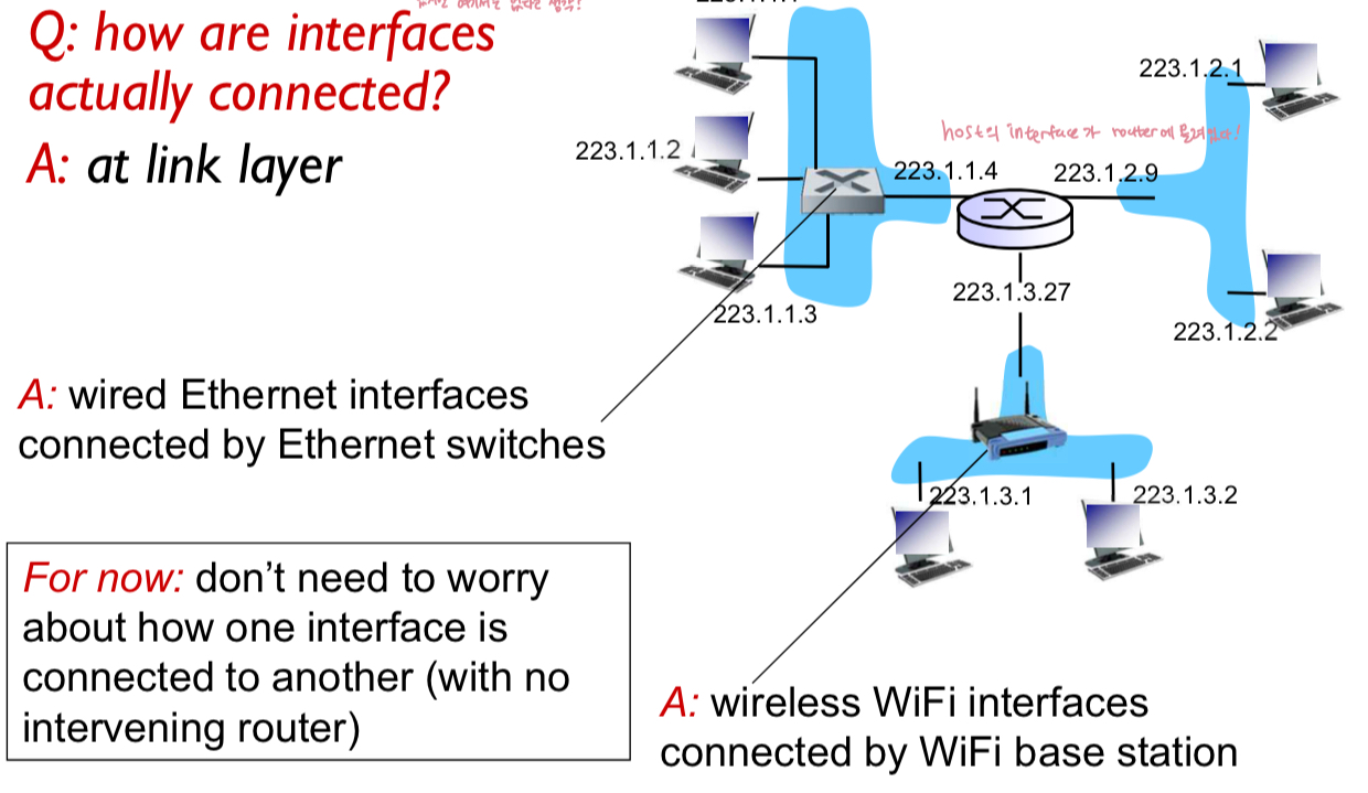 - interface : host/router과 물리적 링크 간의 연결