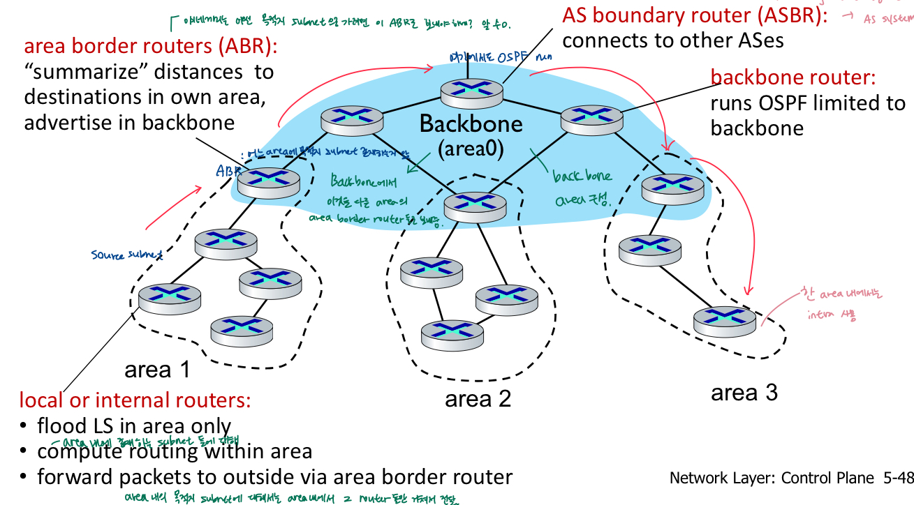 - 세상의 모든 라우터가 동일한 라우팅 프로토콜 쓴다면 자기에게 붙어있는 모든 subnet 리쳐빌리티 정보는 네트워크 전체에 flooding하던지 distance vector가 다 reply해서 나가던지 해야함
